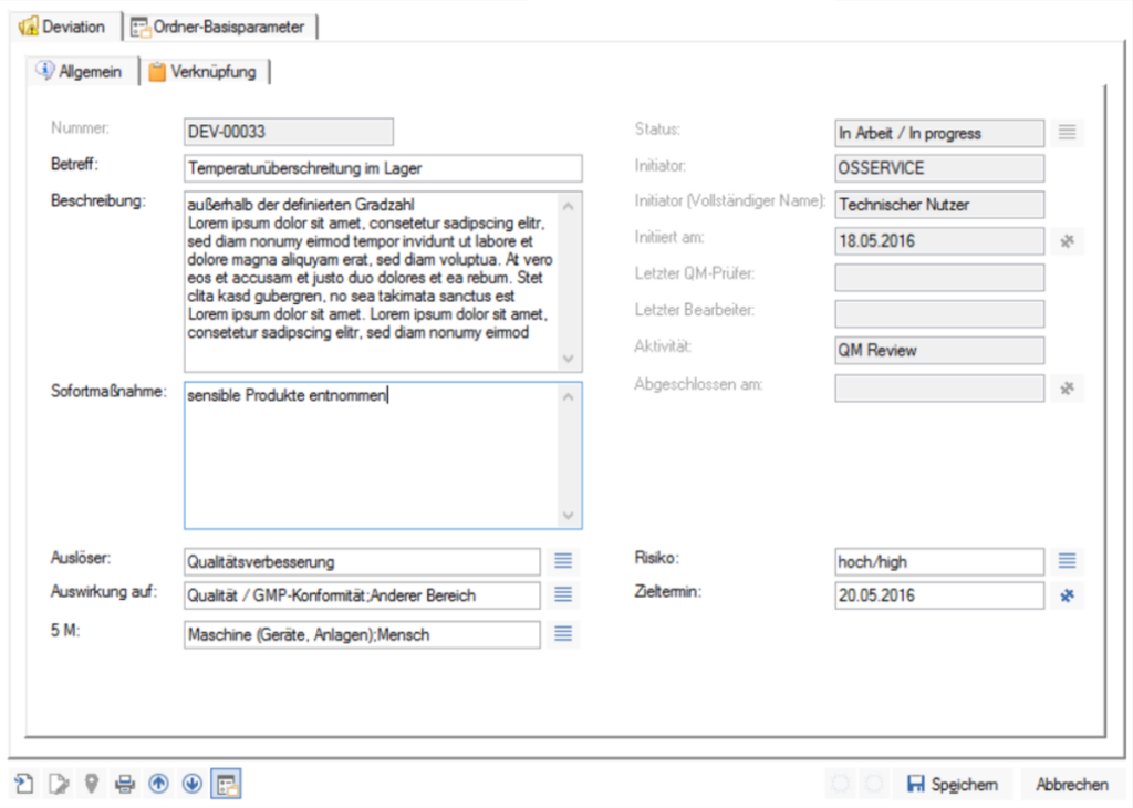 Der sich immer mehr in den Vordergrund drängende Ansatz, alles einer Risikobetrachtung zu unterziehen, wird auch in unserer Best-Practice-Lösung Deviation/CAPA berücksichtigt. Die Beurteilung und Bewertung eines Risikos ist jedoch immer Aufgabe der am Prozess beteiligten Personen. Die enaio® Best-Practice-Lösung dient als Werkzeug, um die notwendigen Aufgaben besser zu bearbeiten, zu überwachen und zu dokumentieren.