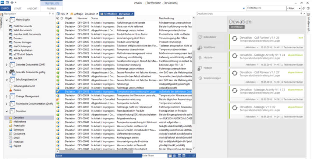 Mit der enaio® Best-Practice-Lösung (BPL) Deviation Management als Teil eines digitalen Qualitätsmanagements können Abweichungsmeldungen zentral erfasst und über einen workflowgesteuerten Prozess abgearbeitet werden.