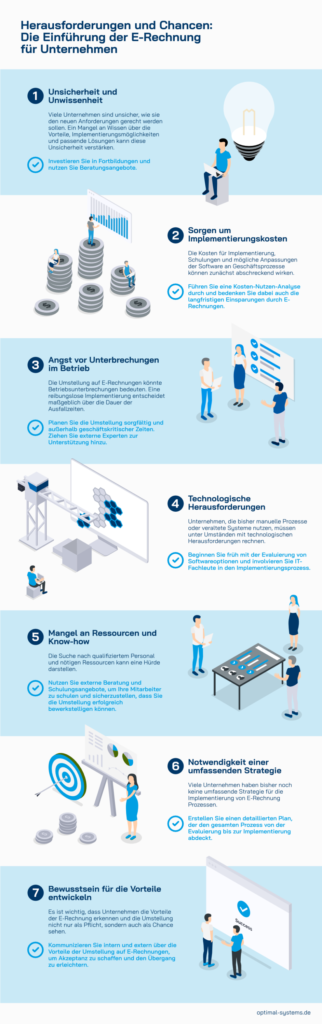 Lösung: Kommunizieren Sie intern und extern über die Vorteile der Umstellung auf E-Rechnungen, um Akzeptanz zu schaffen und den Übergang zu erleichtern.